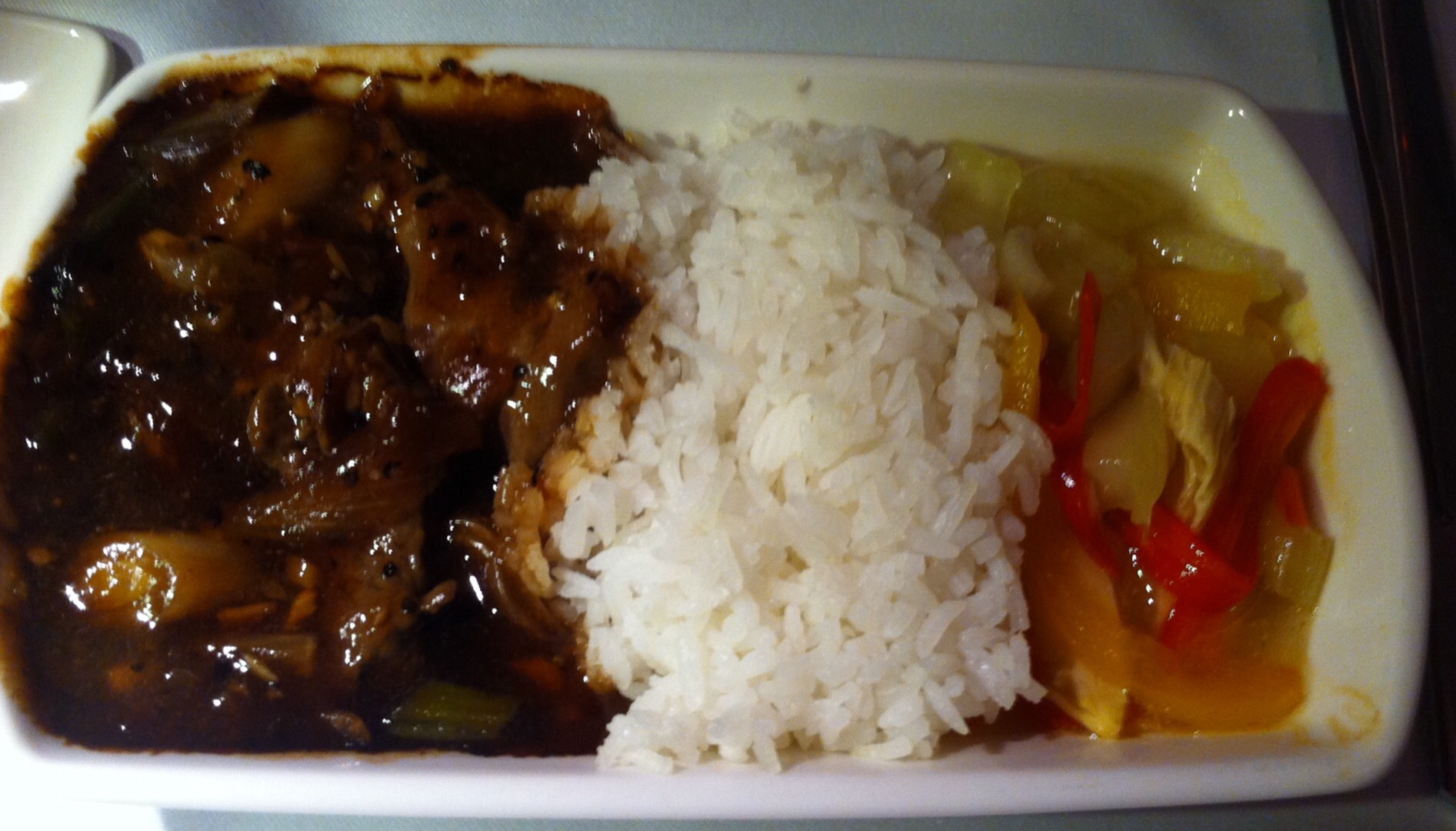 See the red bits? That is chilli – but I didn’t realise until it was too late so my mouth was burning and my eyes watering! π I definitely don’t like chillies!!!! I think I need another glass of π·! Lol.