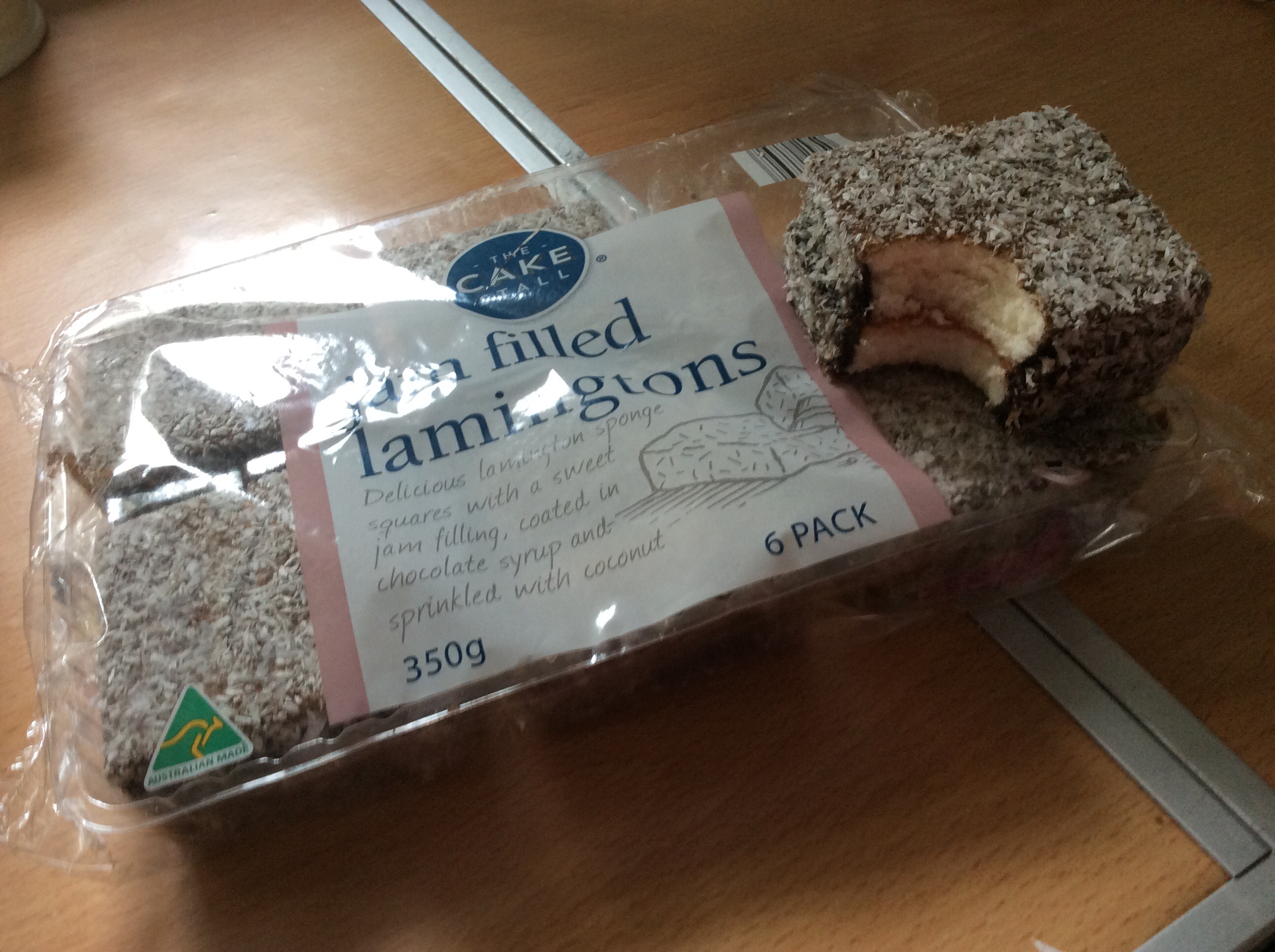 A day for my chores today so I have paid bills, done some washing, bought some birthday cards, found a shop that sells Birkenstock waterproof sandals, booked my Melbourne trip and found some Lamingtons! Unfortunately, the bakery had run out but I found these in ALDI!