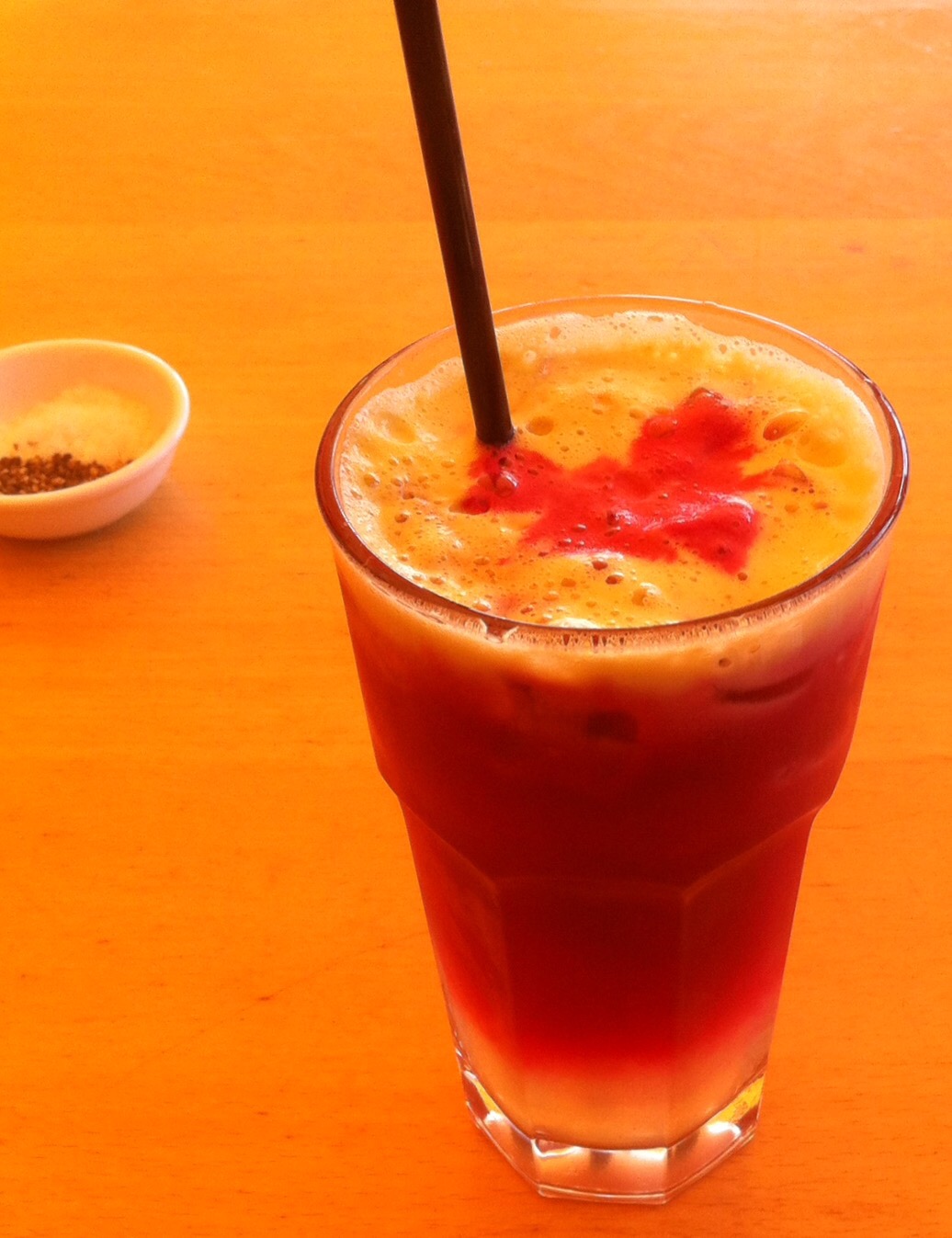 Today was a gloriously sunny day so I decided to go out for lunch. I wanted to try out the place Alice and I had stopped at previously. So after showering and slapping on the suntan lotion I walked up the road to the Byron Beach Cafe. To start with I ordered an apple, beetroot and cellery juice.