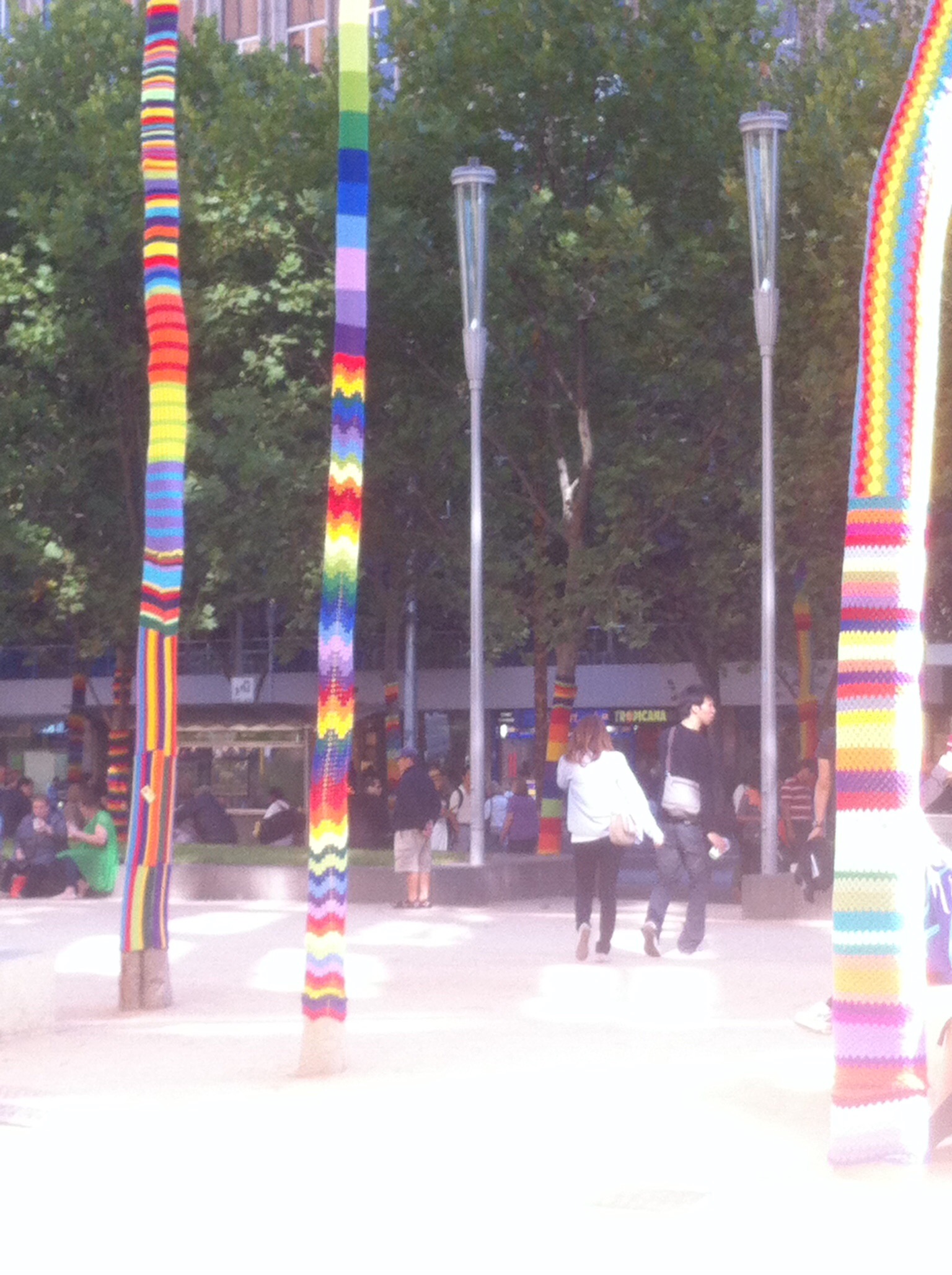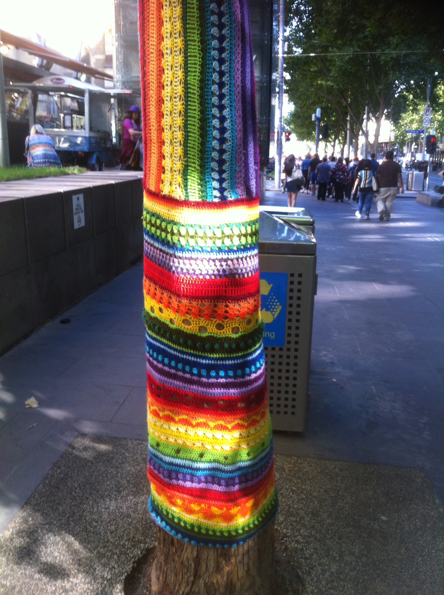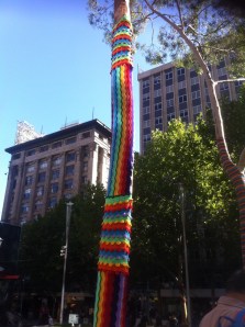 Now, I had a chance of checking out the yarn bombing! There were a lot of trees covered in yarn of every stitch and colour. It seems that this installation by Yarn Corner was commissioned by Melbourne council for the Christmas holidays.