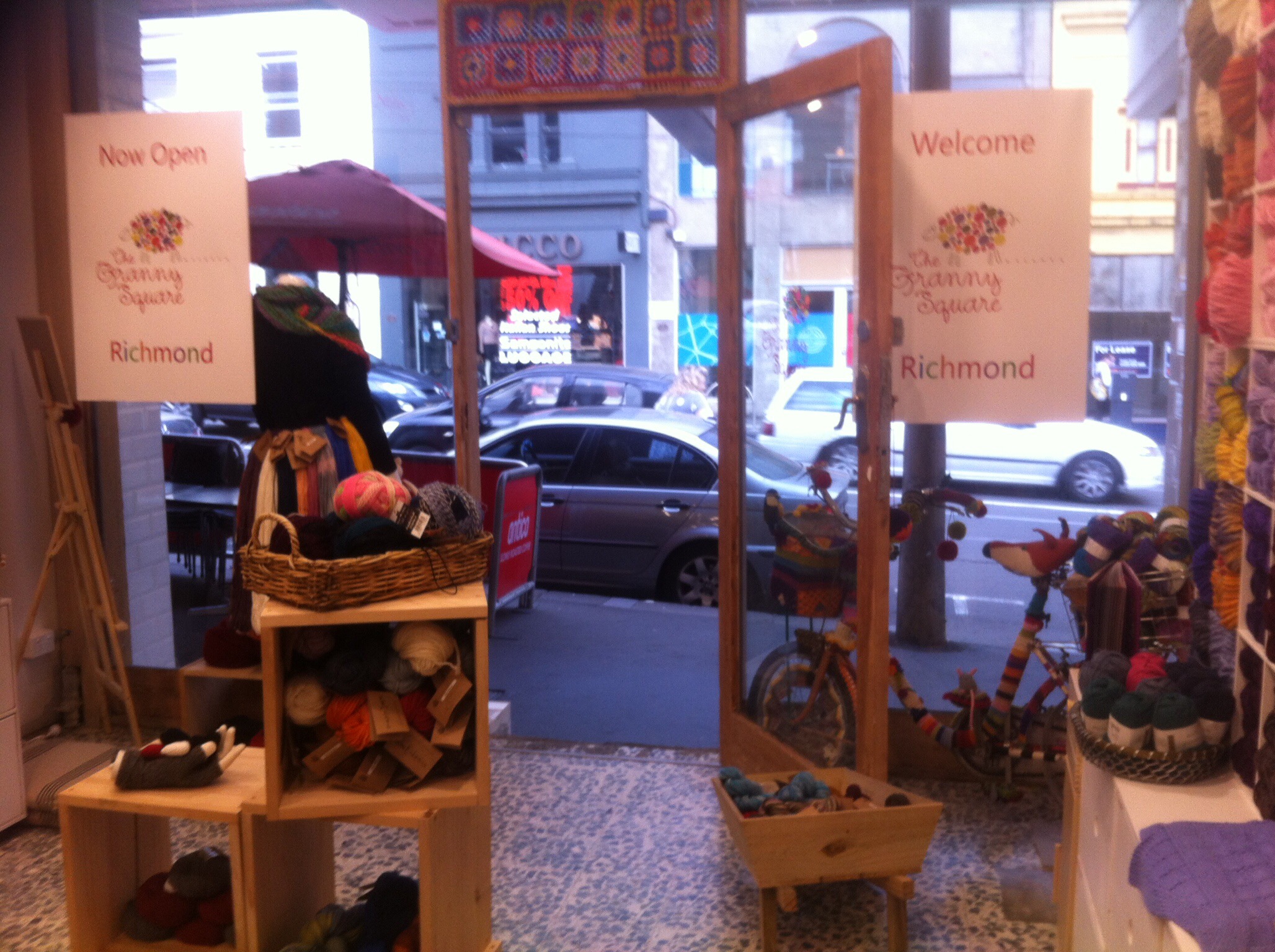 An even longer tram ride back into the city was diverted to a different track for repairs so I ended up travelling through Richmond. As I was gazing through the window at life I saw an open shop door with three women knitting at a table. Without thinking I got up and pulled the bell to stop the tram at the next stop. Off I got and walked back to the open door.