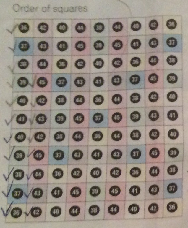 Only three squares to go before I have finished this strip!  As they are repeating patterns I have done before these squares shouldn’t take me too long.😀