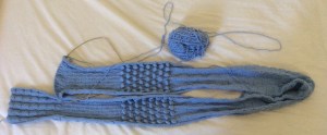 I managed a small a mount of knitting before I went to bed early so I have started my last square of this strip and then I will sew the three together and then a third of the throw will be done.