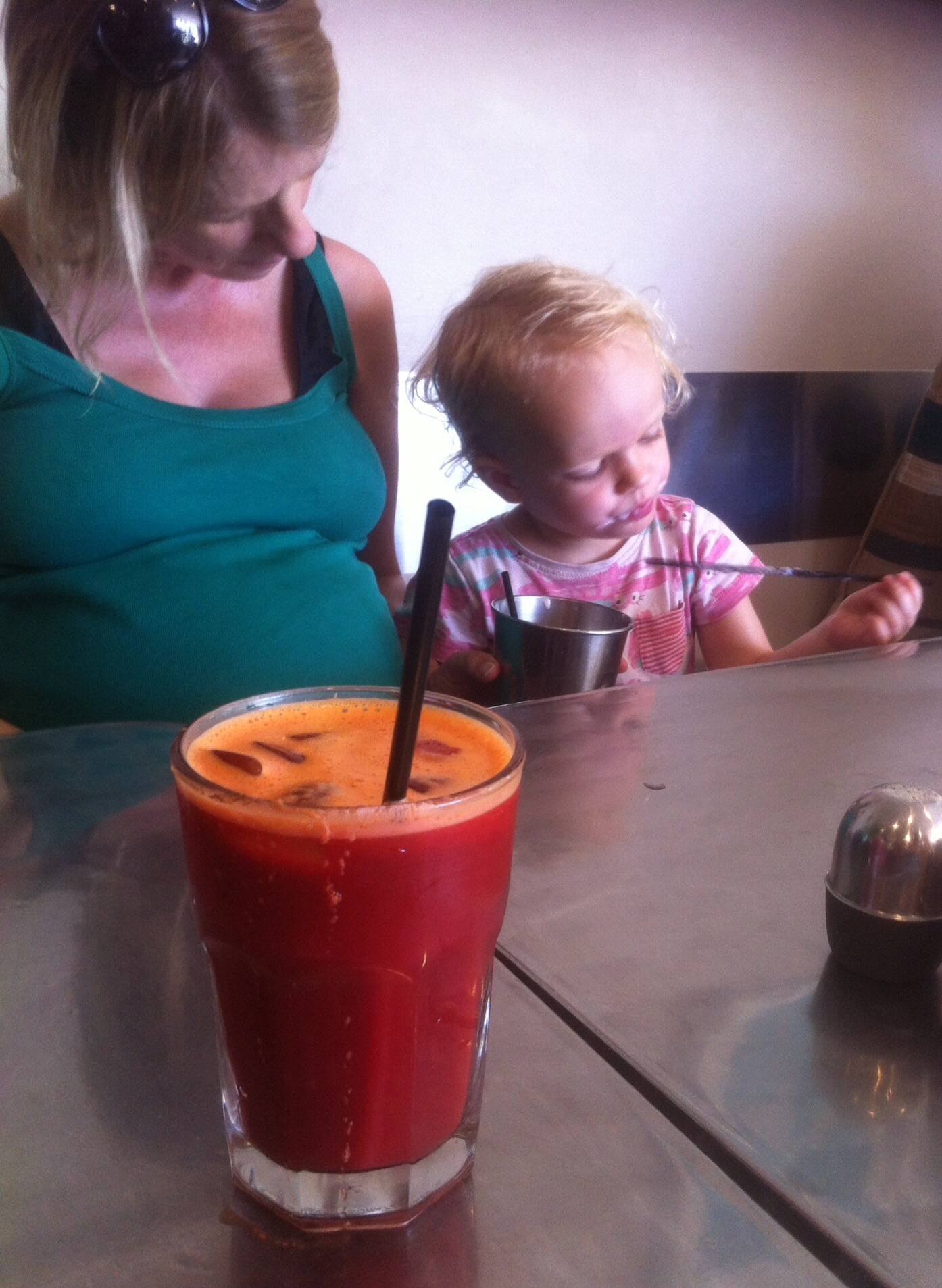 So Monday’s we take Elsie to football only this morning she really wasn’t feeling it for the second half. She cheered up a bit when she was having a smoothly with her Mum. I was trying a veggie juice – cellery, beetroot and ginger. I did drink it all but won’t be having another one!