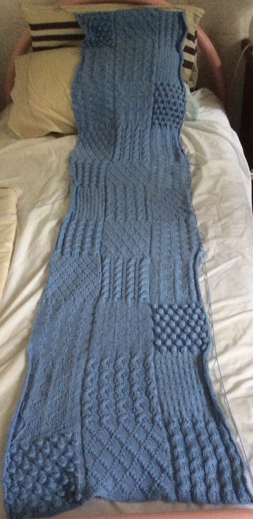 Sorry, so back to the throw, now we all have some idea of the size of this throw – it is not small and will keep Elsie, and probably the new baby too, warm in the winter for many years to come! I have realised that I must be about a third of my way through my trip as I have done a third of the throw! I checked it out and my trip is 150 days in total and 50 days was the 12th March so my throw is on schedule! I also missed two weeks of knitting the throw before the cotton arrived! I also realised that Castell’s birthday is exactly half way through! I am really looking forward to seeing him in less than two weeks now! 😀