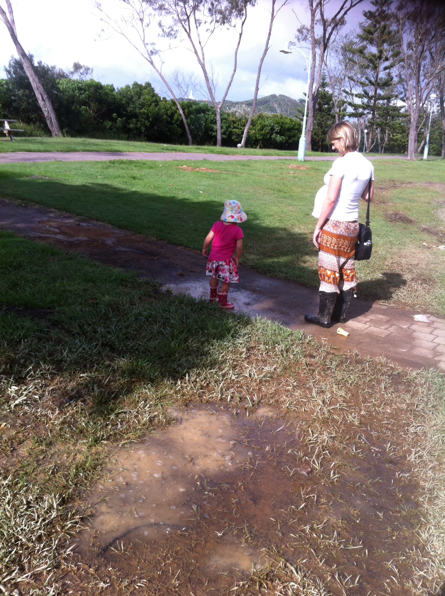 Alice came down at 3:30 and Elsie got up and we decided to go to the park as the rain had stopped. However, somewhere alone the line muddy puddles were mentioned so wellies were donned and off we went to search for them!