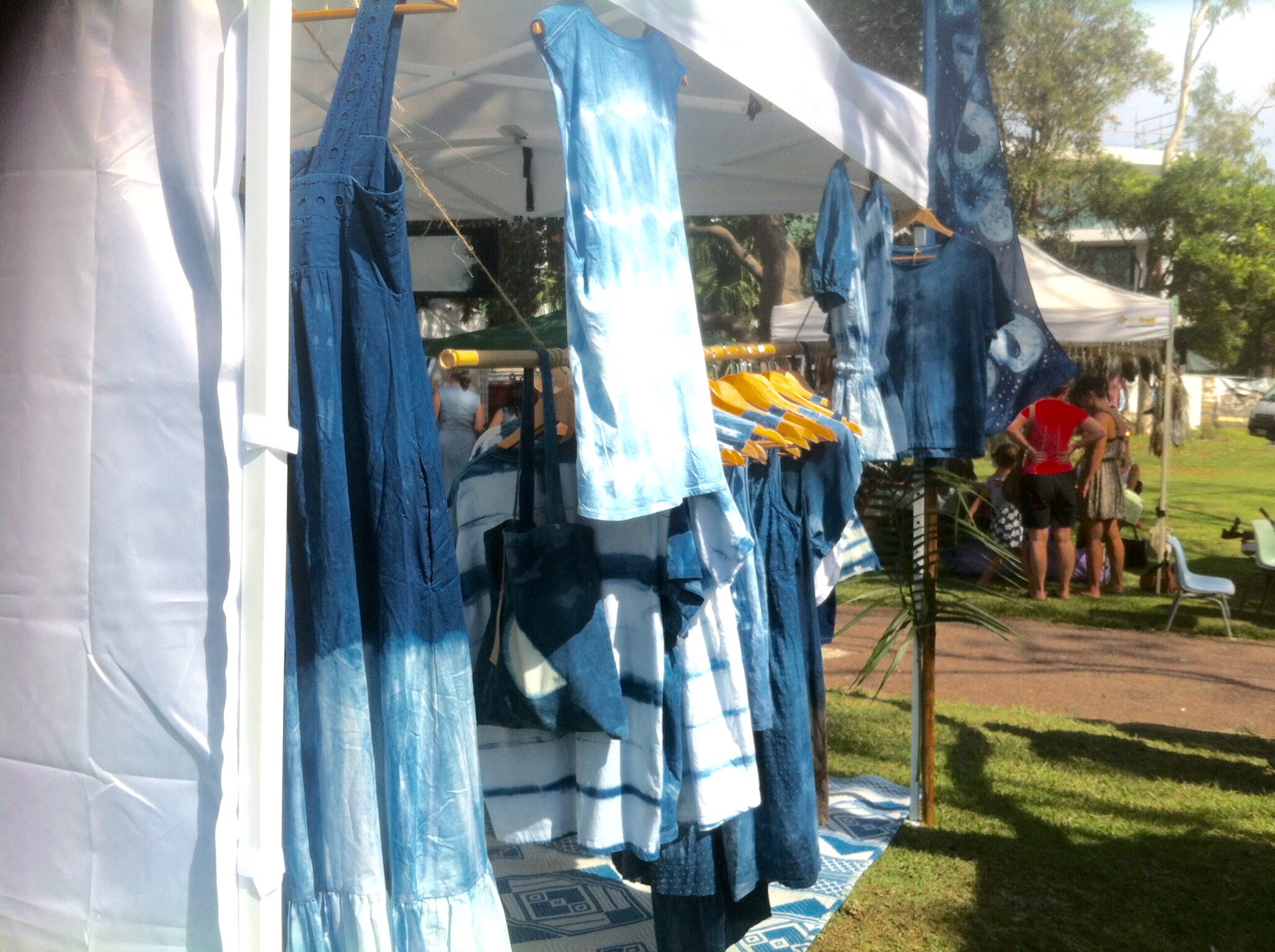 I particularly like the white hearts on a deep blue back ground – you can see the pattern in the back ground but that is a throw and too big for a scarf!  The owner dyes materials from muslin though to silk and has a lovely tones to the colours.