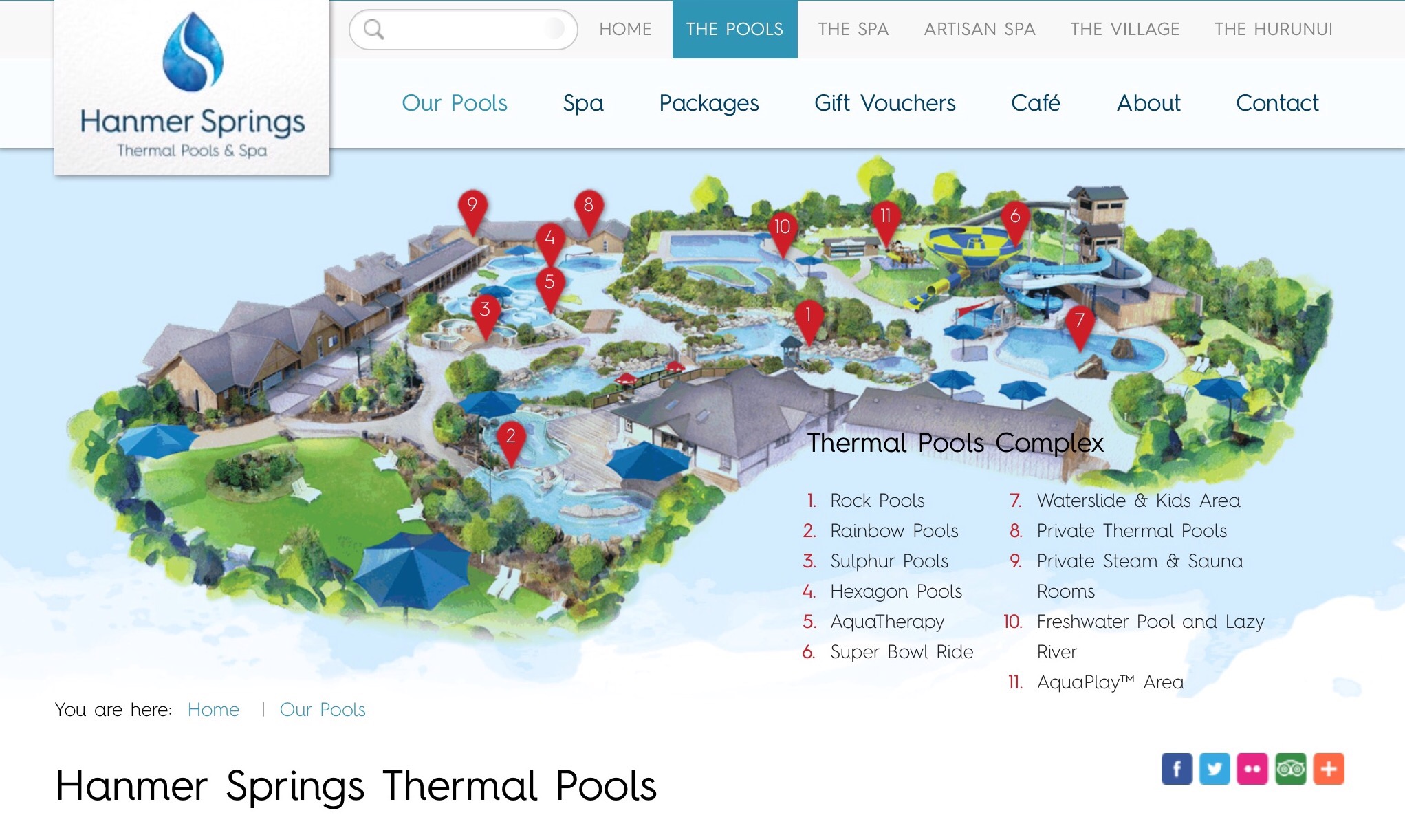 This morning I dressed without showering as we were going to Hanmer Springs – a water park with natural thermal waters. I then had two cups of tea and toast while helping Cheron make cheese and bacon sandwiches. Once we were all set we piled into the car and went off to collect Castell from the YHA. Fortunately, Cheron and Chris have an eight seater so we all fried in the one car. We were then on our way down the highway – an ordinary two lane road that probably wouldn’t pass as a bypass in the UK!