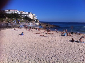 So this morning, after doing a bit more research for the rest of the week and getting myself sorted, I made my way to the bus stop again. Fortunately, the weather was good and the sun was shining. I boarded the same bus but rode it all the way to the end of the route – Bondi Junction. I thought I might have a look round the Westfield Mall on my way back. I then boarded another bus that took me down to Bondi Beach.
