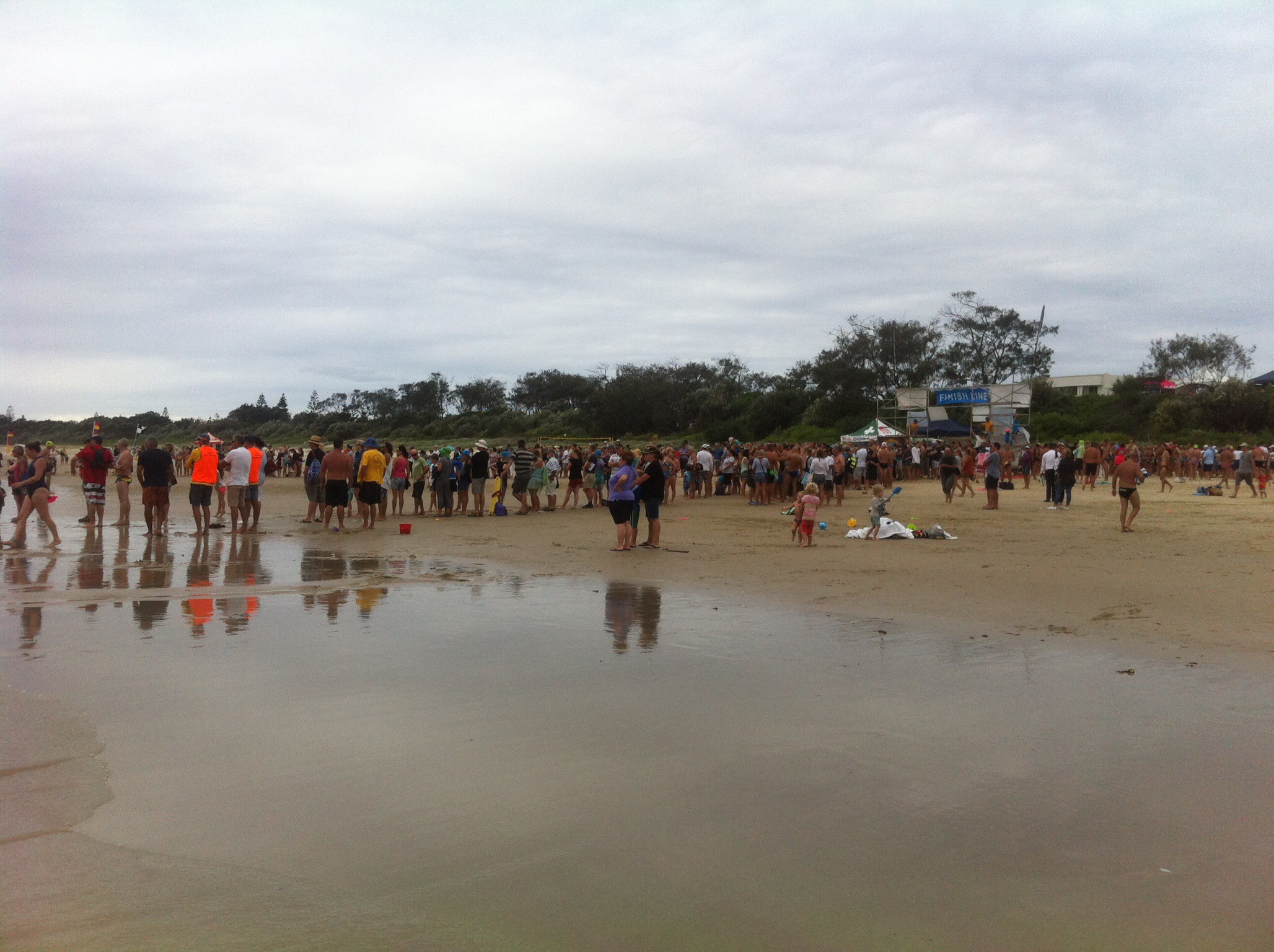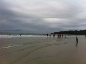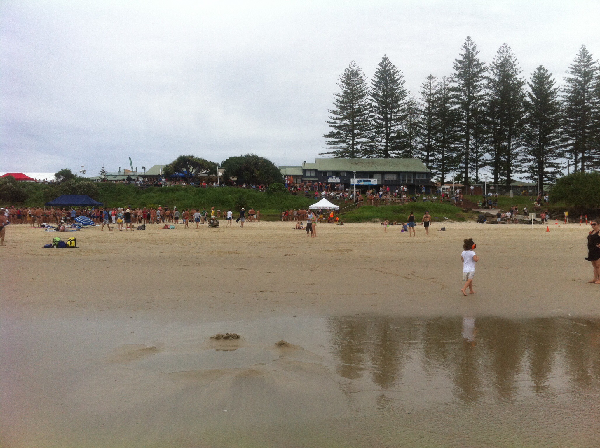 Still waking up at 8 but not jumping out of bed! I was up and ready to take Elsie from 9:30 though. Jon was swimming in the Byron ocean race with a colleague and Alice was going to carry their stuff back from the start line. Elsie and I played upstairs for a while and then downstairs for a bit until it was time for us to go and see what was going on. The beach front was full of people, there were tents with clothes and food being sold and the loud speakers were playing music and making announcements.