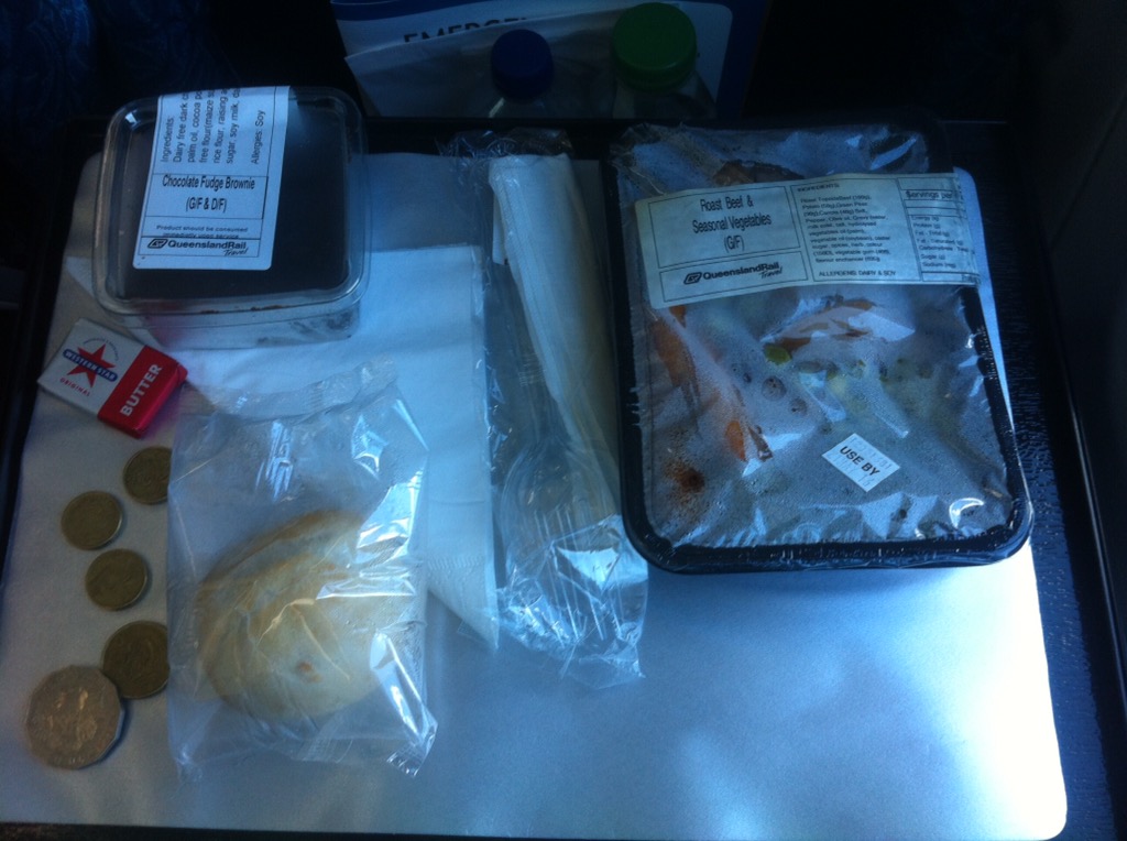 I got up, showered and dressed before making my way to the bus stop. Fortunately, I hadn’t missed it and it took me back to the Roma Street railway station. I was at least an hour early so I found a cafe (not easy on a Sunday!) and had fried eggs on toast and a cup of tea. Afterwards I went to the toilet to freshen up and make my way to Platform 10. I met Sarah and then checked my baggage in. I was allowed 17kg and my bag weighed 17.21kg!