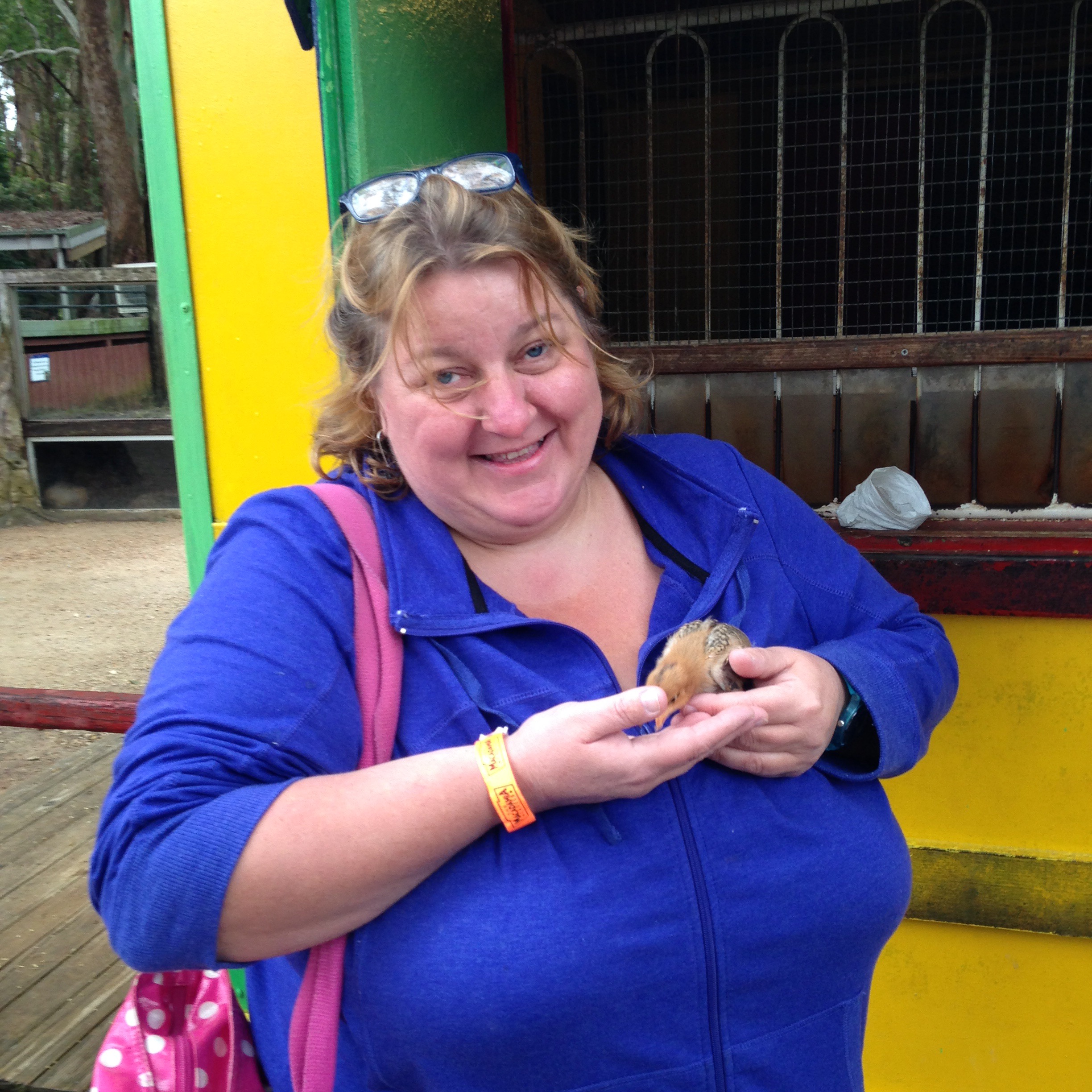 Then, while Elsie was being pushed on the swings I fed some seeds to the baby chicks who are soooo cute and small and fluffy.